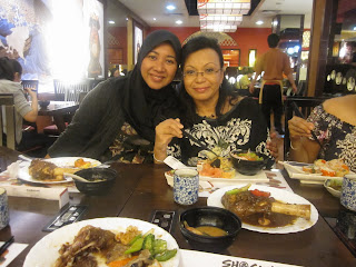 We enjoyed the food, sambil ternganga2 tengok gelagat manusia...macam2 pesen. Then later, we took the elevator up, to watch clearly the beautiful decoration that they prepared for Christmas. Memang cantik, the rich Christmas color, gold, green and red, that made it so grand. Only when I realized that today is Pre sale day..for handbags and shoes. Macam tau2 aje. Honestly, did not plan pun..just coincident! Dengan Iman yang teguh ku masuk kedai tu. Argh! No!! I was taken aback by one particular pair and the cheapest around. Kena banyak lagi berzikir ni,... lalu terbabit lah dengan sepasang kasut. I kept telling hubby *with feelings of guilt* I need one, dah lama tak beli.. Macam lah dia tak faham isterinya, he didn't mind, I know. *Shoes are my wickness* I have a weak spot on them in my heart!